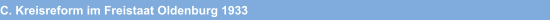 Nach der Verwaltungsreform 1933 gab es dann nur noch die Stadtkreise Oldenburg, Rüstringen (1937 vereinigt mit dem vormals preuss. Wilhelmshaven zum oldenb. Stadtkreis Wilhelmshaven), Delmenhorst und die Ämter (ab 1939 Kreise) Ammerland (Westerstede), Cloppenburg, Friesland (Jever), Oldenburg, Vechta und Wesermarsch (Brake).