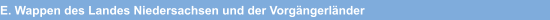 Das Land Niedersachsen entstand am 01.11.1946 durch den von der britischen Militärregierung verfügten Zusammenschluss der Länder Braunschweig, Oldenburg, Schaumburg-Lippe und dem am 23.08.1946 aus der ehem. preuss. Provinz Hannover hervorgegangenen Land Hannover. Hauptstadt ist Hannover.Am 30.06.1991 kam das östlich der Elbe in der ehemaligen DDR liegende Amt Neuhaus hinzu. Das Landeswappen lehnt sich an den ehemaligen Wappen von Hannover und Braunschweig (dem Westfalen-, Welfen- oder Sachsenross) an. Da es mithin bei der Gründung des Landes Niedersachsen 1946 bereits vier Fünftel der niedersächsischen Bevölkerung repräsentierte, wurde es (zunächst inoffiziell) zum Landeswappen des neuen Bundeslandes, das der Landtag nach auführlicher Diskussion am 3. April 1951 bestätigte. Das Landeswappen wurde im Artikel 2 der Vorläufigen Niedersächsischen Verfassung vom 13. April 1951 verankert und in der am 1. Juni 1993 in Kraft getretenen Niedersächsischen Verfassung wiederum in Artikel 1 bestätigt. Die Symbole der ehemaligen Länder Oldenburg und Schaumburg-Lippe blieben unberücksichtigt.