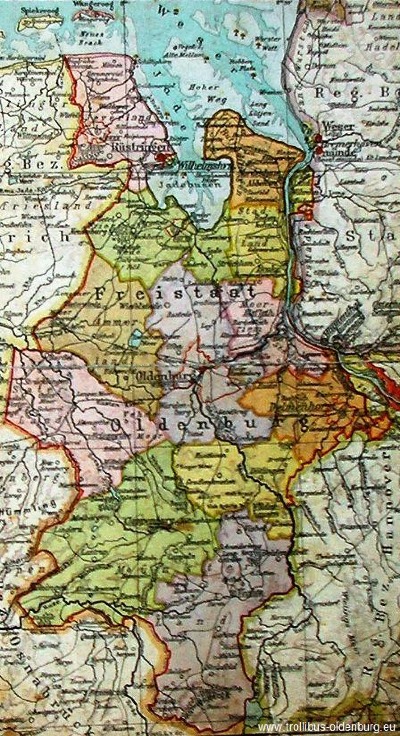 Der Landesteil Oldenburg des Freistaates Oldenburg bestand bis 1932 aus den Städten Oldenburg, Rüstringen, Delmenhorst, Varel und Jever, sowie den Ämtern Brake, Butjadingen (Nordenham), Cloppenburg, Delmenhorst, Elsfleth, Friesoythe, Jever, Oldenburg, Varel, Vechta, Westerstede und Wildeshausen.