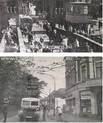 Die Bevölkerung war nach dem Krieg von 80.000 auf 120.000 Einwohner angestiegen und der Busverkehr spielte in den fünfziger Jahren eine größere Rolle als heute, 1955 kamen noch 10.770 beförderte Personen auf je 100 Einwohner, zum Vergleich 1985 waren es nur noch 7.200 Personen. Manch ein Trolli bekam eine Schramme, wenn er in der engen Achternstraße auf den Bürgersteig ausweichen musste und manchmal regnete es knisternd Sterne aus den Oberleitungsweichen.